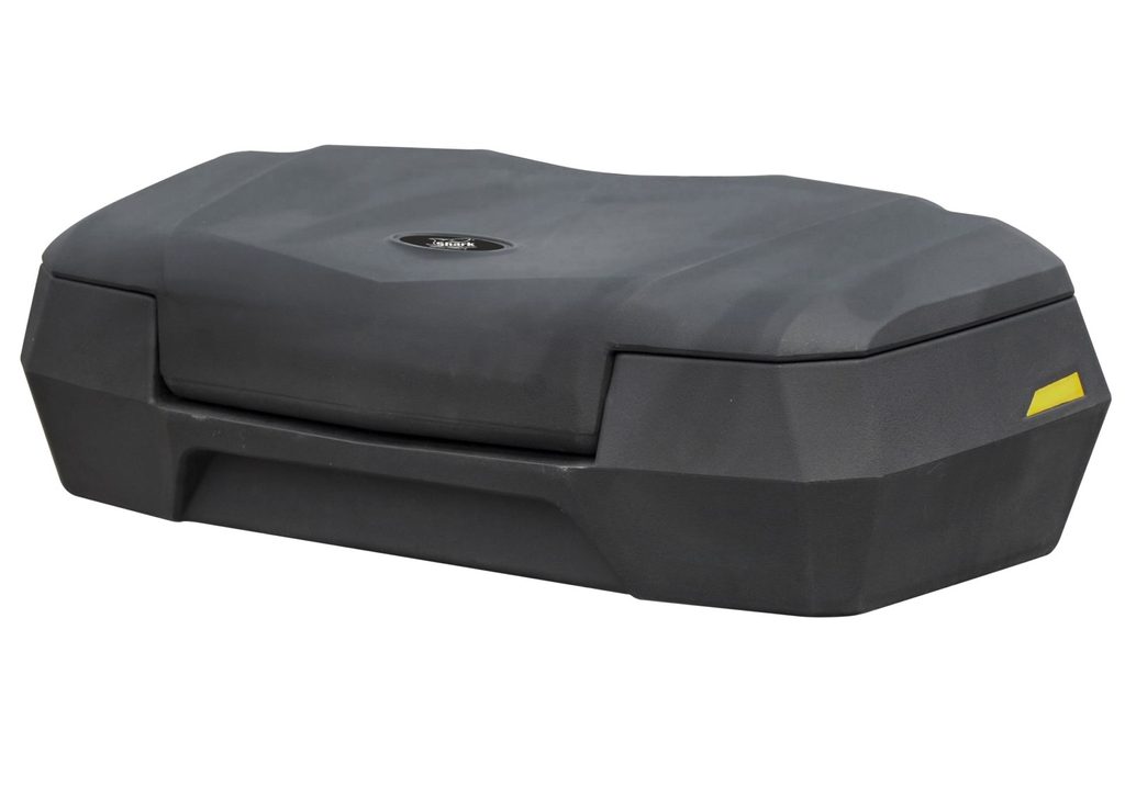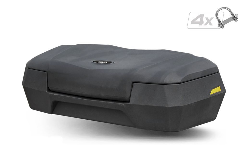Velký uzamykatelný přední box na čtyřkolku, objem 66 litrů, těsnění proti vodě, dvě boční odrazky, barva černá, rozměry 88 (74) x 42 x 24cm (D x Š x V), hmotnost 7,2kg