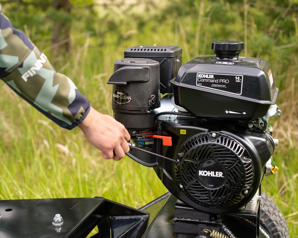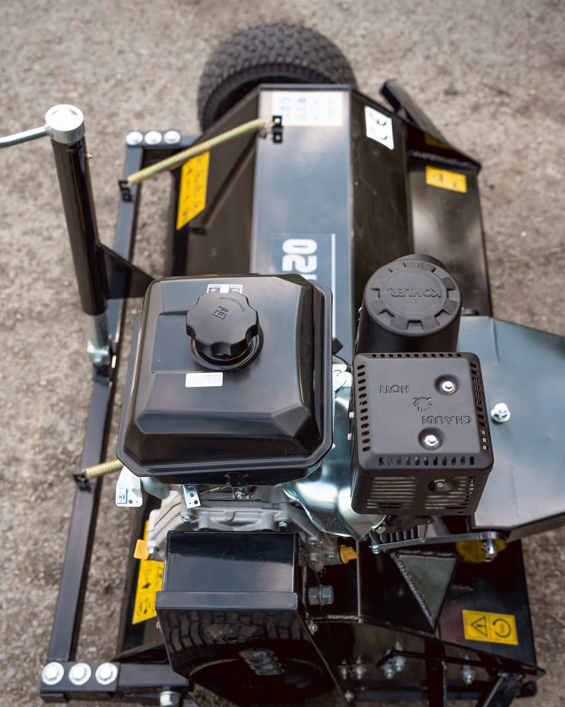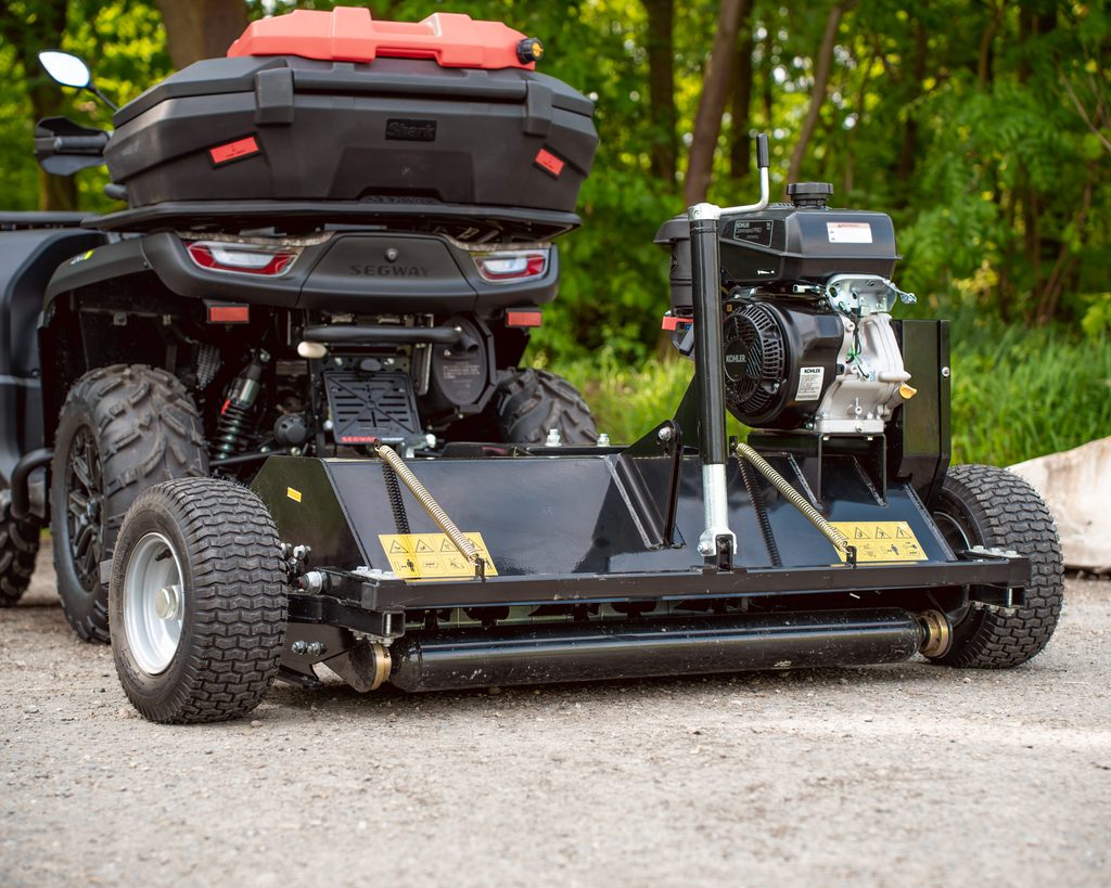 Profesionální mulčovací sekačka k připojení za čtyřkolku, čtyřdobý motor Kohler CH440, 10.5kW / 14HP, pro sekání a mulčování trávy, udržování trávníků, nastavitelná výška sečení 1-10cm, šířka záběru 120cm