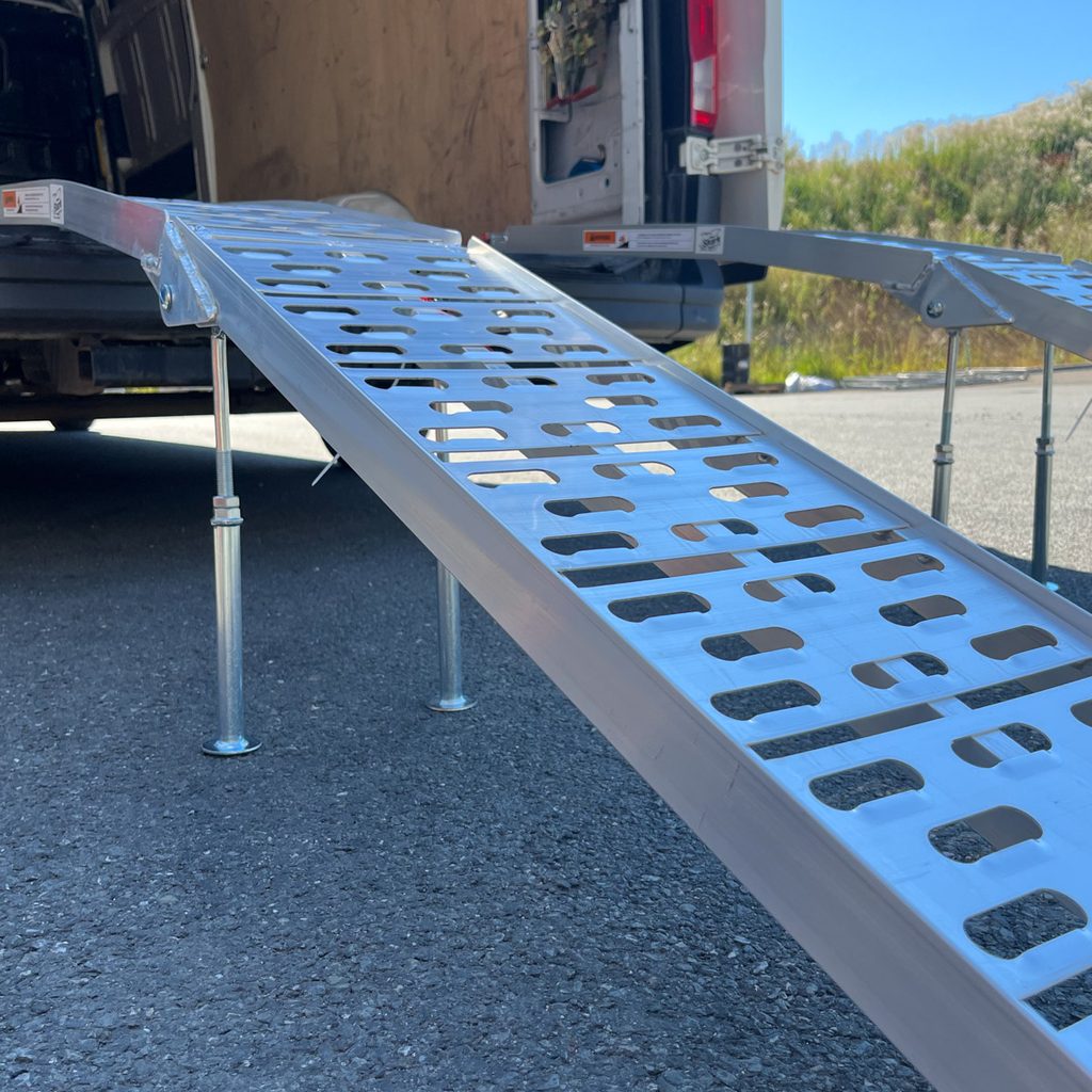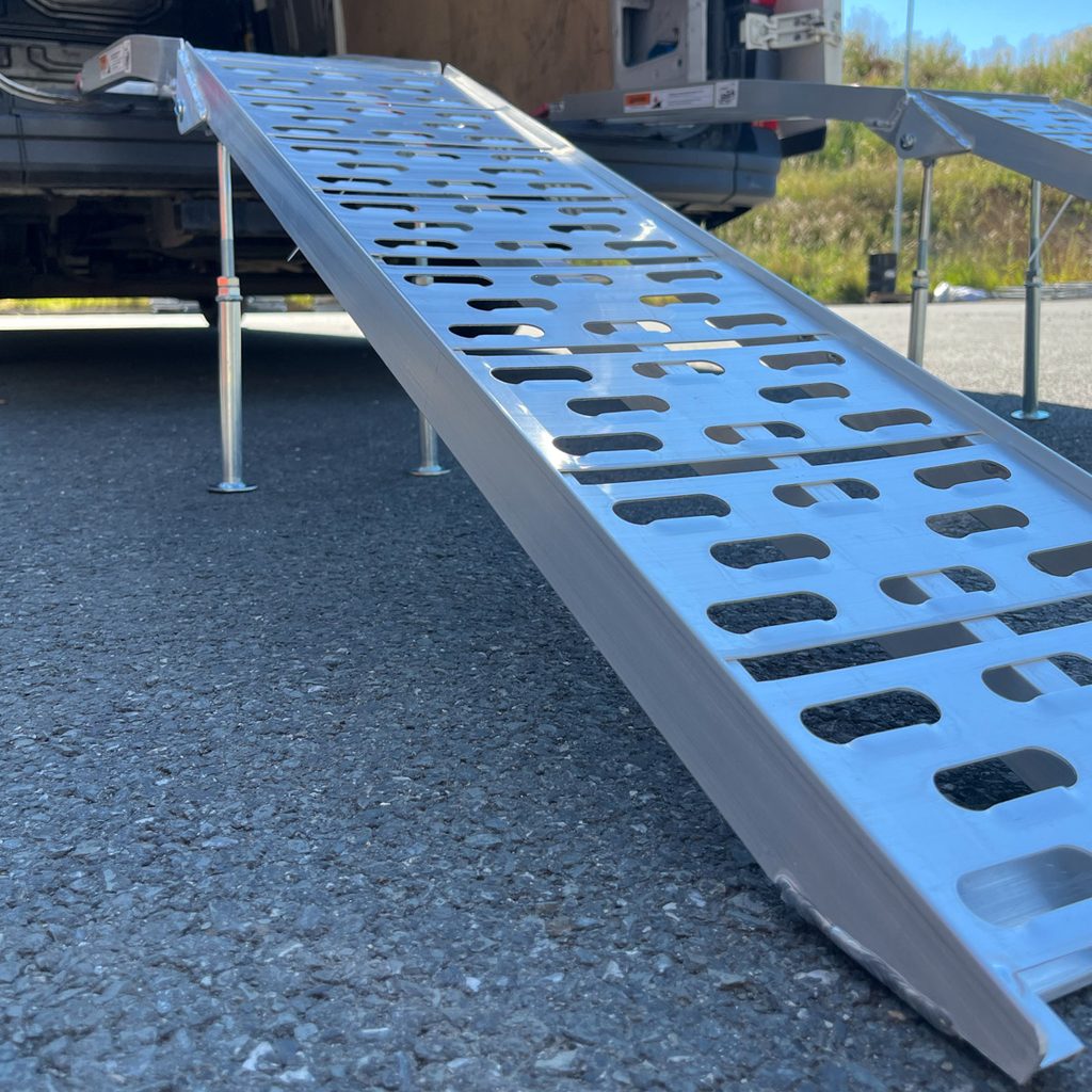 Heavy Duty UTV skládací hliníkové nájezdy se středovými podpěrami, nosnost 1360 kg, délka 230 cm, šířka 28,5 cm, pogumované konce, 2 nájezdy, 2 zajišťovací popruhy