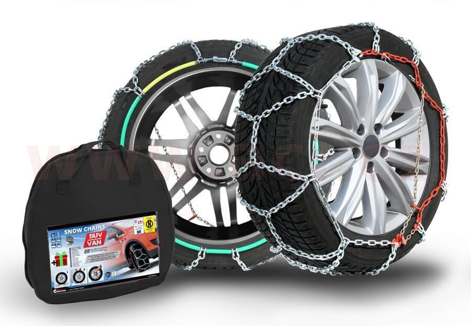 Sněhové řetězy, pro SUV/VAN do hmotnosti 7500 kg, splňující veškeré vyžadované evropské normy. Lze použít i pro dodávky a obytná vozidla.