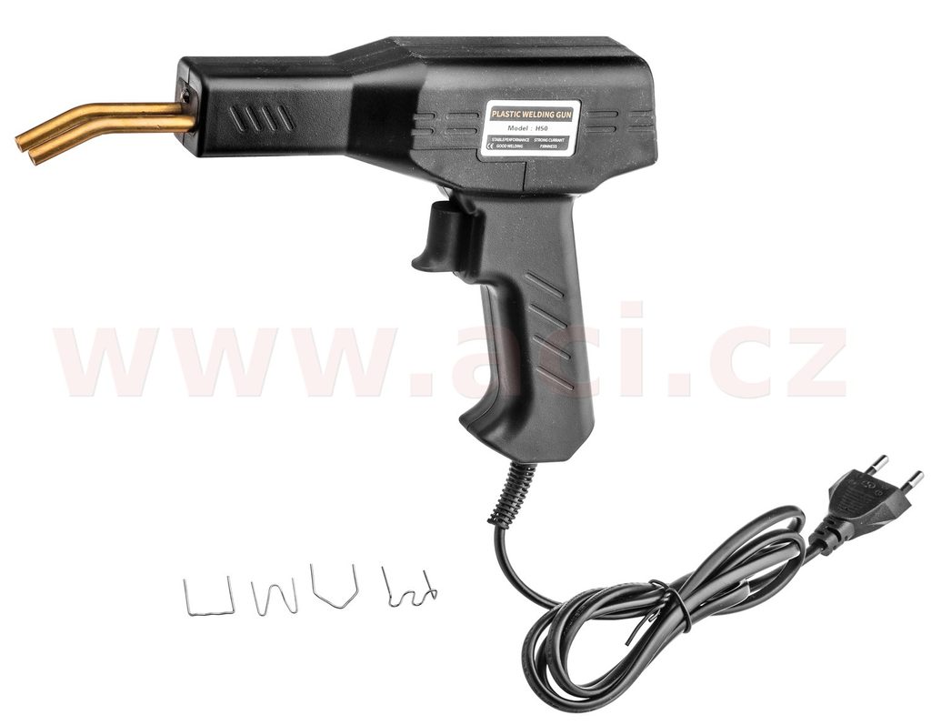 Sada pro opravy plastových dílů, svařování plastů a scelování prasklin. Sada obsahuje svířecí pistoli s LED přísvitem a 600 ocelových spon na plast (4 druhy po 150 ks).
