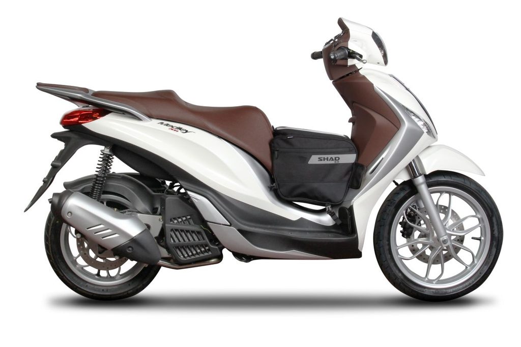 Taška pro skútr SC25 do prostoru mezi nohy je vybavena 2 postranními kapsami a vejde se do ní přilba. V horní části naleznete průhlednou dotykovou kapsu, do které můžete vložit mapy, tablet nebo GPS.
