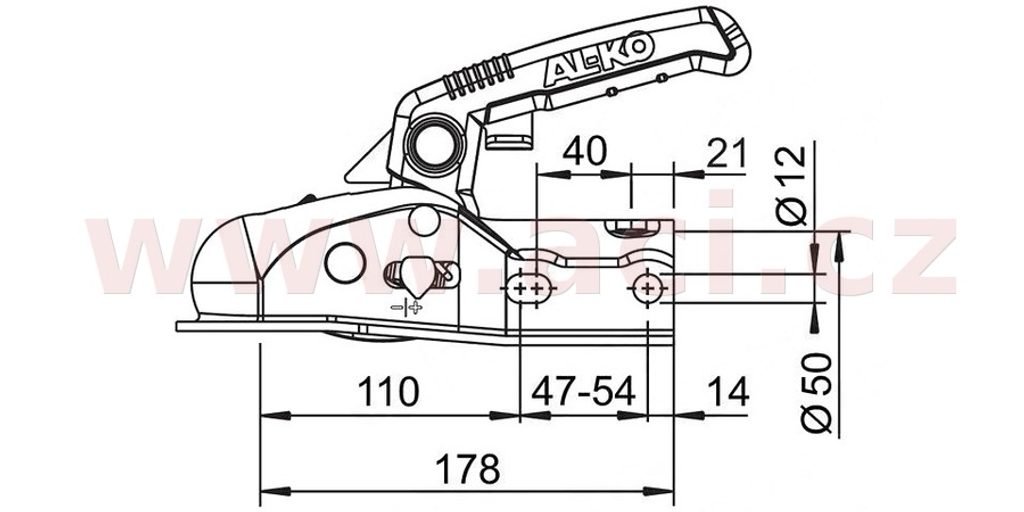 Maximální povolené svislé zatížení spojky je 120 kg a je určená pro přívěsy vybavené nájezdovou brzdou do nejvyšší povolené/technicky přípustné hmotnosti přívěsu 1600 kg.