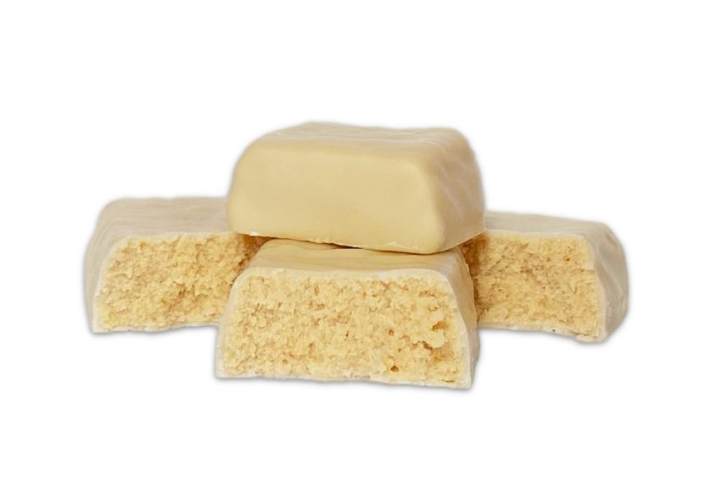 Výtečná proteinová tyčinka s 32% podílem biologicky hodnotných bílkovin s vitaminy. S příchutí bílé čokolády a polevou z mléčné čokolády.