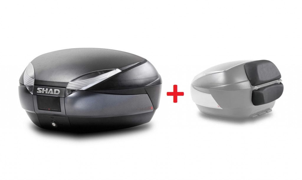 Vrchný kufor na motorku SHAD SH48 D0B48300+D0RI4800 Dark grey / black with PREMIUM SMART lock and backrest