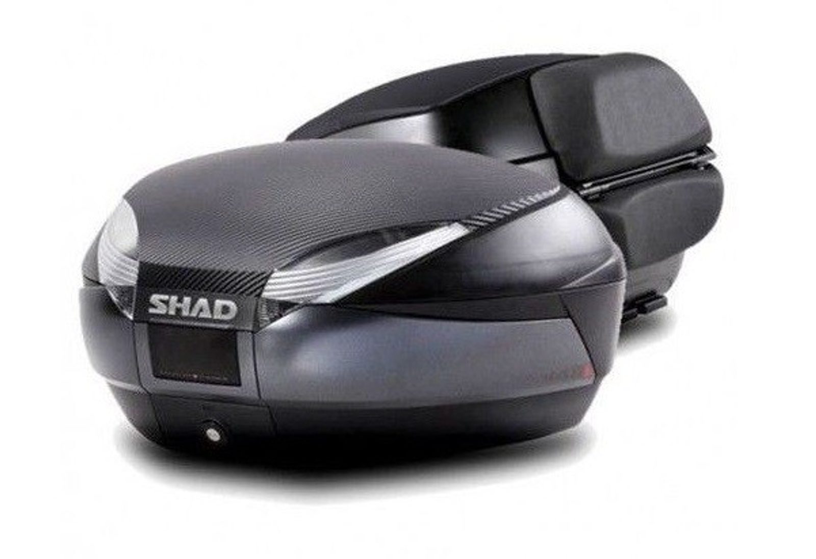 Vrchný kufor na motorku SHAD SH48 D0B48306R Tmavo šedá s operadlom, karbónovým poťahom a zámkom PREMIUM SMART