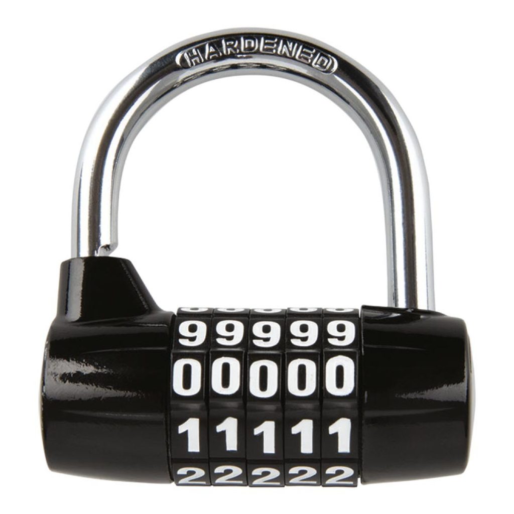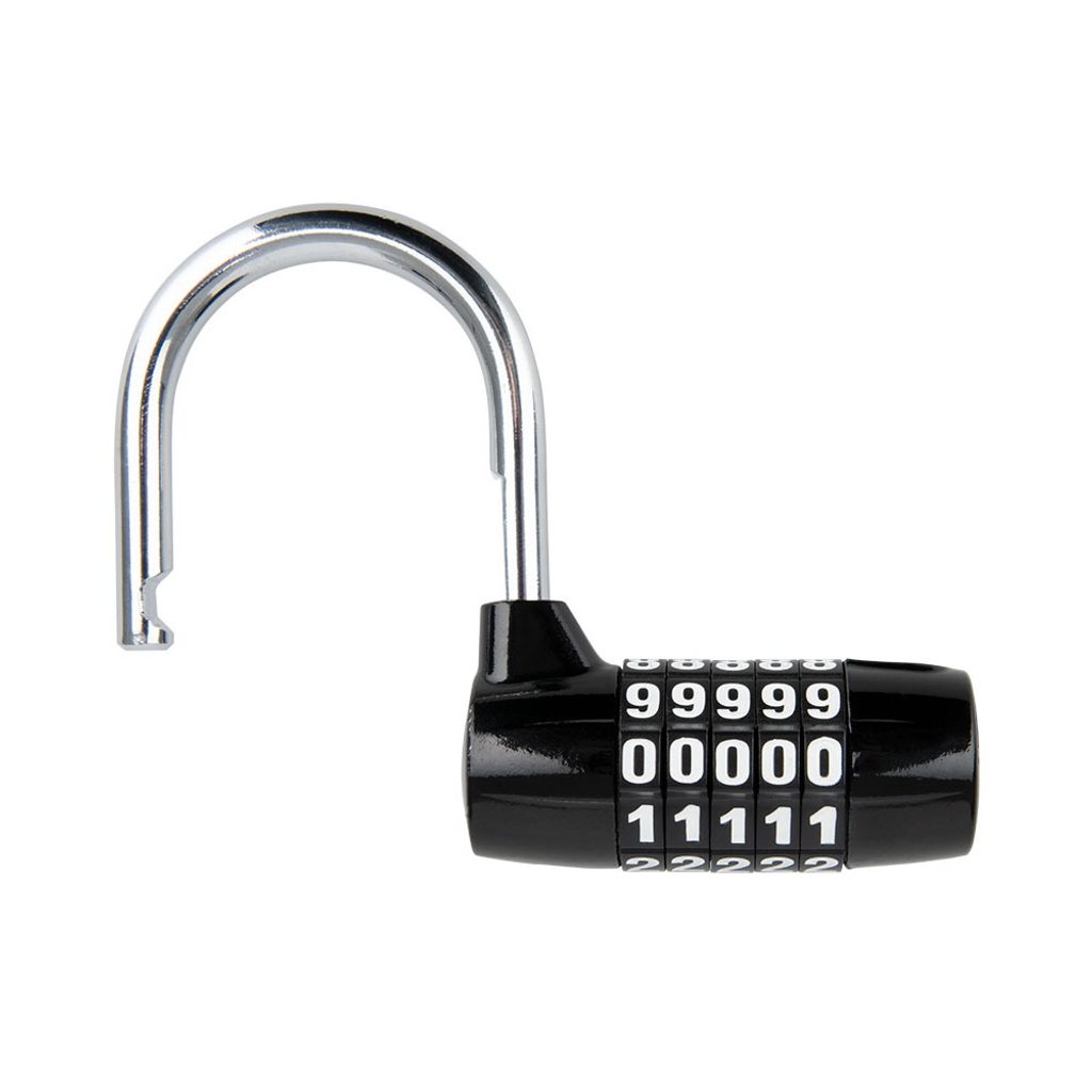 Visací, kombinační zámek s pěti-kotoučovým číselníkem je vhodné řešení pro ty, kteří nechtějí nosit v kapse extra klíč nebo se obávají, že by klíče od zámku ztratili.